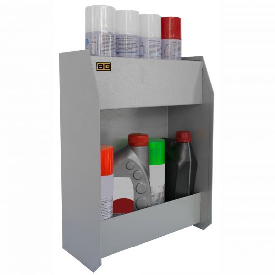 メーカーB-G Racing商品名2シェルフフルードキャビネット-小特徴・壁掛け・丈夫なスチール構造・複数のボトルサイズを収納 商品説明 このキャビネットは、ガレージ/ワークショップでの使用、またはレーストラックやサービス車両での使用にも最適です。